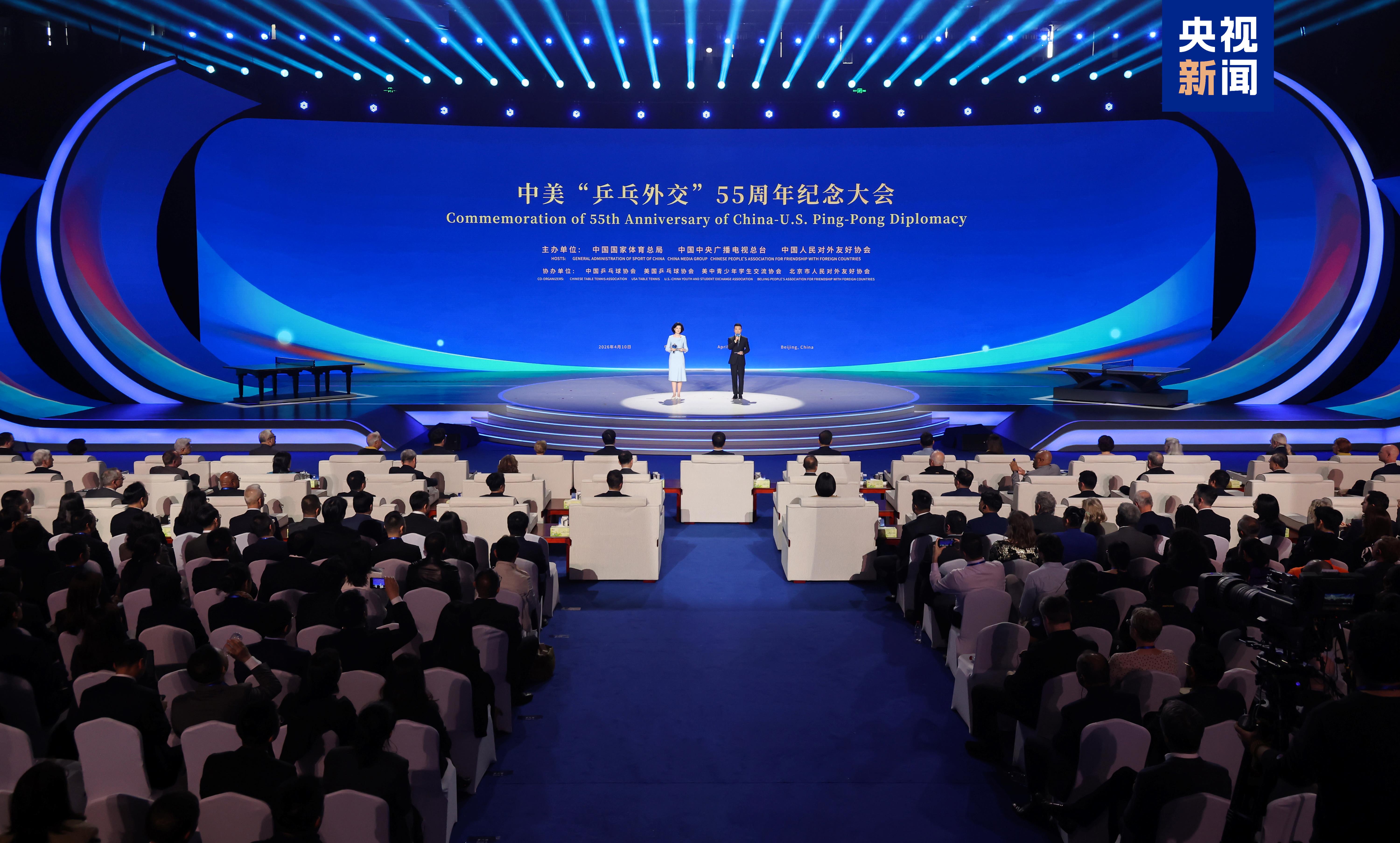 10 квітня на Московському стадіоні в Пекіні відбулася церемонія, присвячена 55-річчю китайсько-американської «пінг-понгової дипломатії». Учасники спільно згадували історичний момент «маленький м’яч рухає великий м’яч», продовжуючи традицію дружби між народами Китаю та США та підтримуючи подальше поглиблення спортивного та культурного обміну між молоддю двох країн.