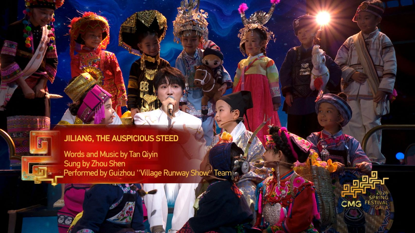 Оригінальна композиція в китайському стилі «Цзілян — благословенний кінь» створена за мотивами образу Цзіляна — міфічного скакуна з давньої пам’ятки «Шань хай цзін» («Книга гір і морів»).