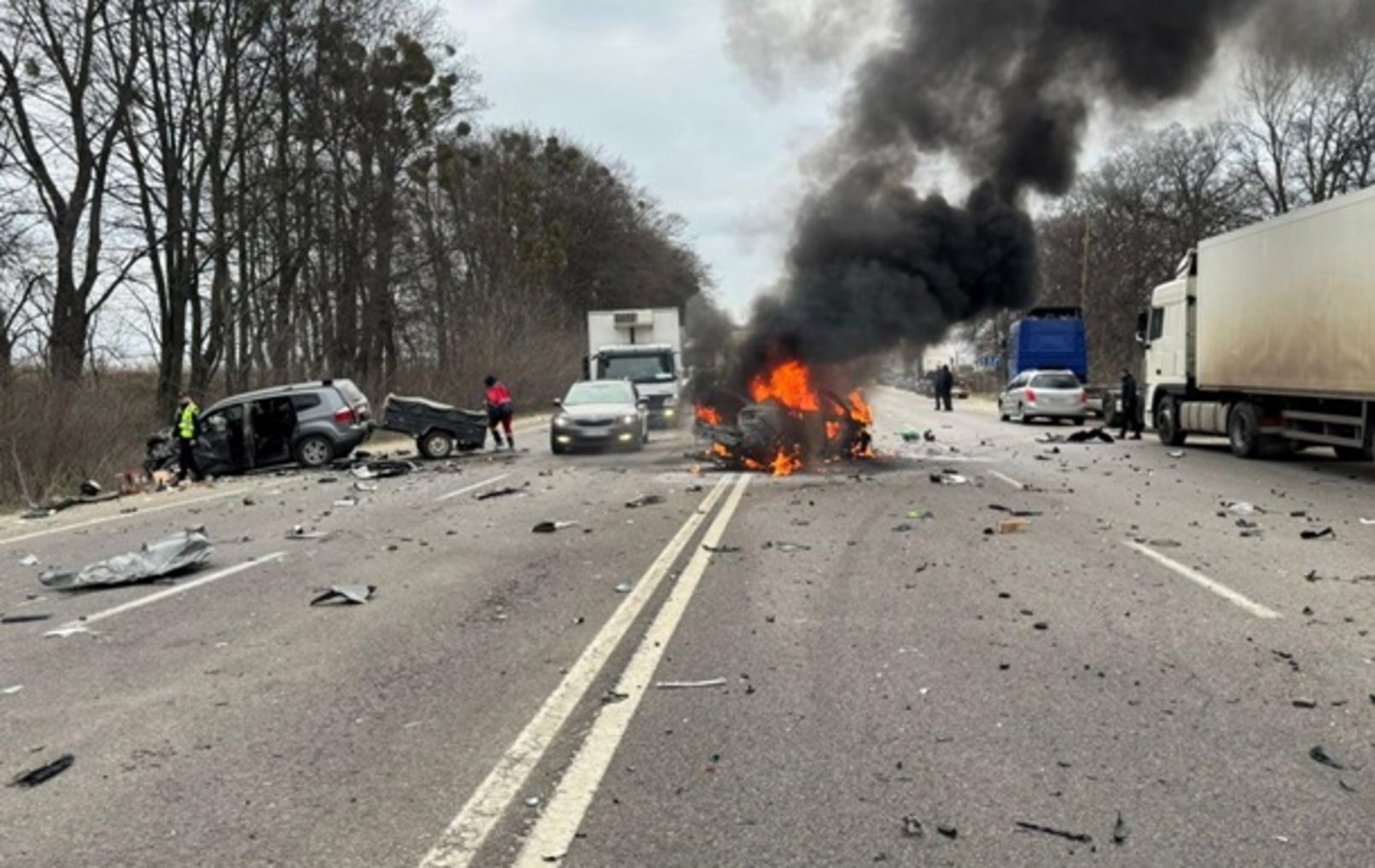В одному з населених пунктів Львівської області, Дублянах, сталася жахлива автомобільна аварія, внаслідок якої одна особа загинула, а інші отримали травми. За попередньою інформацією, зіткнулися два автомобілі, один з яких загорівся і вибухнув. Правоохоронці повністю перекрили рух на трасі Київ-Чоп. Об’їзд організовано через населені пункти Сороки-Львівські, Муроване та Ямполь. Поліція встановлює деталі події та особи постраждалих.